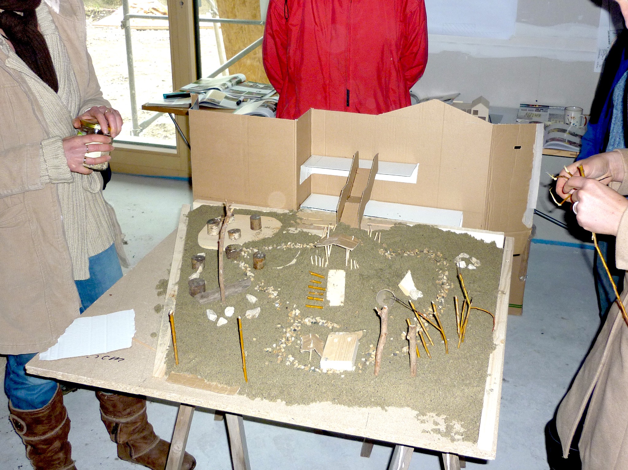 Aus Naturmaterialien gestaltete dreidimensionale Modelle machen Eure Ideen sichtbar.